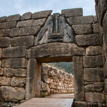 Archeologisch onderzoek in de burcht van Mycene heeft duidelijk gemaakt dat de heuvel al bewoond was rond 3000 voor Christus. De Leeuwenpoort (zie foto) stamt uit de dertiende eeuw voor Christus.
