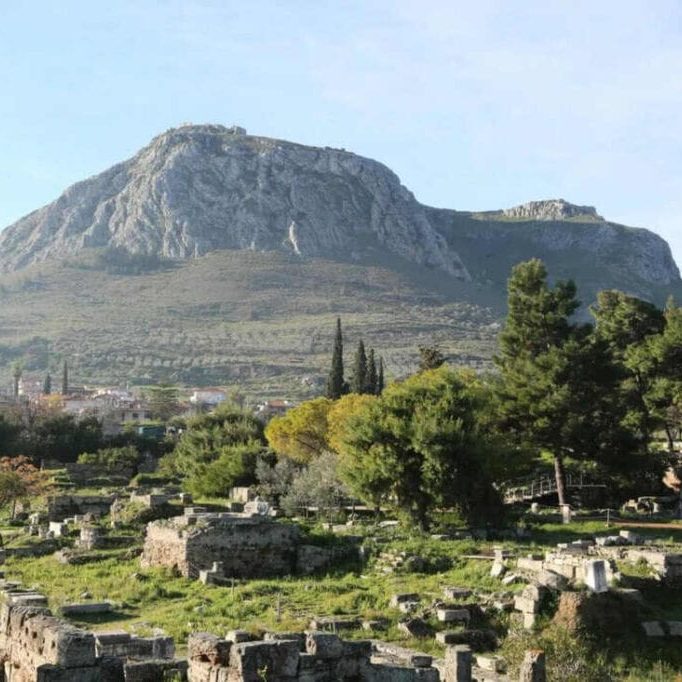 Akrokorinthos is een steile rots van 575 meter hoog die de vlakte van Korinthos