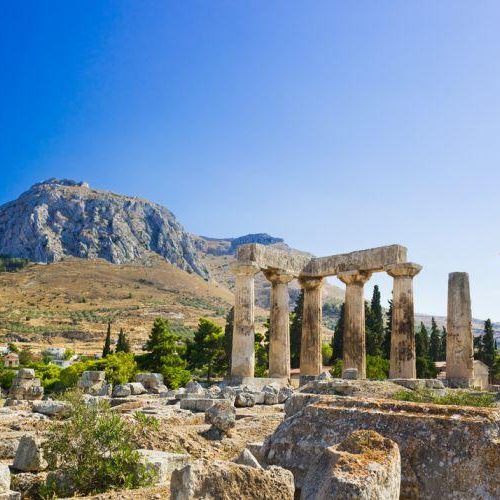 domineert. Het oude Korinthos werd gebouwd aan de noordelijke uitlopers van de heuvels. Bovenop deze rots staan de restanten van het grootste kasteel van de Peloponnesos. Een bezoek aan dit kasteel zal je trakteren op geweldige vergezichten. Je kunt zowel de Saronische golf als de golf van Korinthië zien en het prachtige ruige achterland. Omdat er weinig schaduwplekken zijn kun je Akrokorinthos het beste in het voor- en najaar bezoeken.